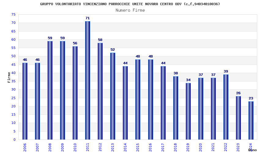 | Anno | Firme | Importi | Media | Naz. | Reg. | Prov. | Comu. |