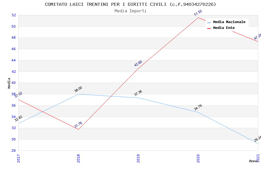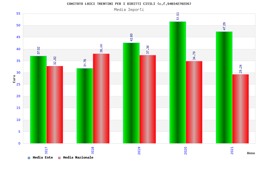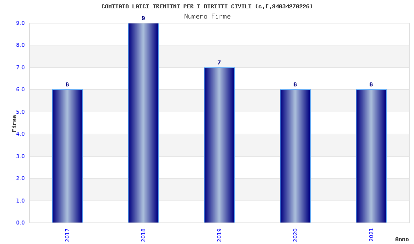 | Anno | Firme | Importi | Media | Naz. | Reg. | Prov. | Comu. |