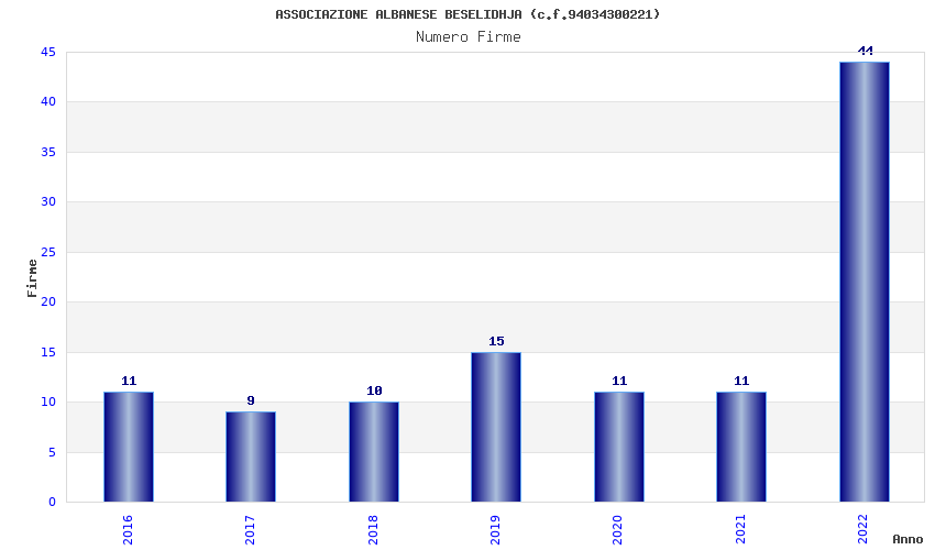 | Anno | Firme | Importi | Media | Naz. | Reg. | Prov. | Comu. |