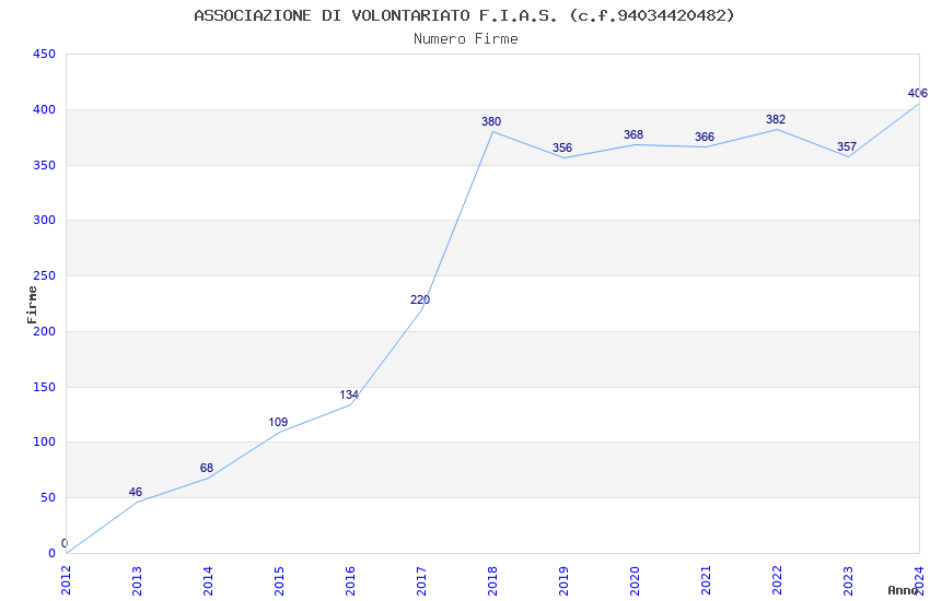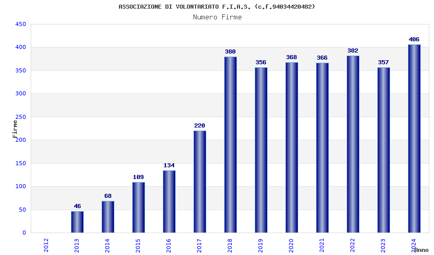 | Anno | Firme | Importi | Media | Naz. | Reg. | Prov. | Comu. |
