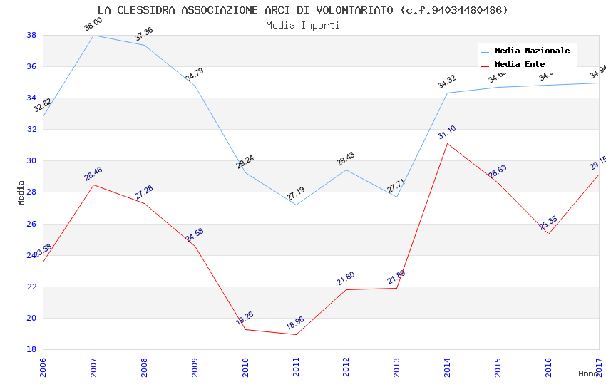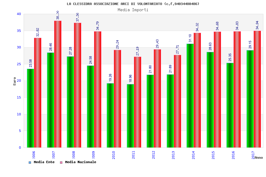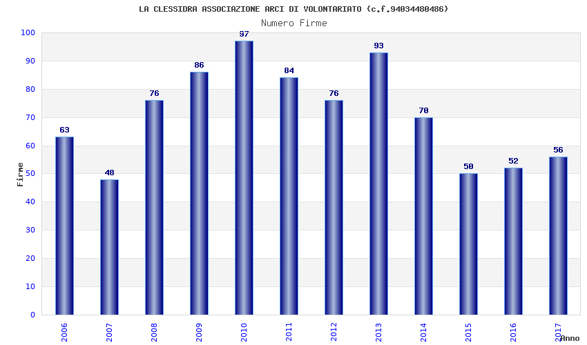 | Anno | Firme | Importi | Media | Naz. | Reg. | Prov. | Comu. |