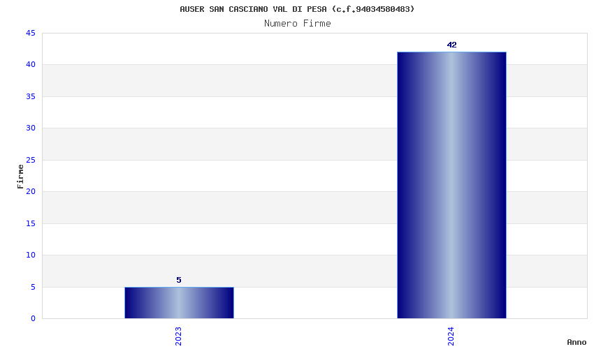 | Anno | Firme | Importi | Media | Naz. | Reg. | Prov. | Comu. |