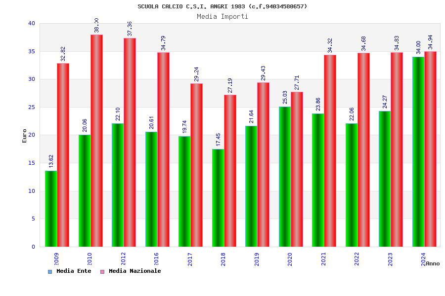 | Anno | Firme | Importi | Media | Naz. | Reg. | Prov. | Comu. |