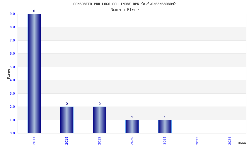 | Anno | Firme | Importi | Media | Naz. | Reg. | Prov. | Comu. |