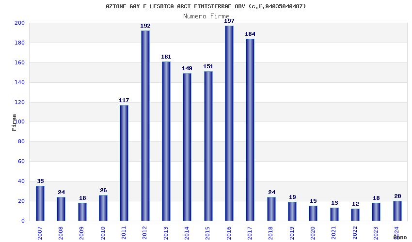 | Anno | Firme | Importi | Media | Naz. | Reg. | Prov. | Comu. |