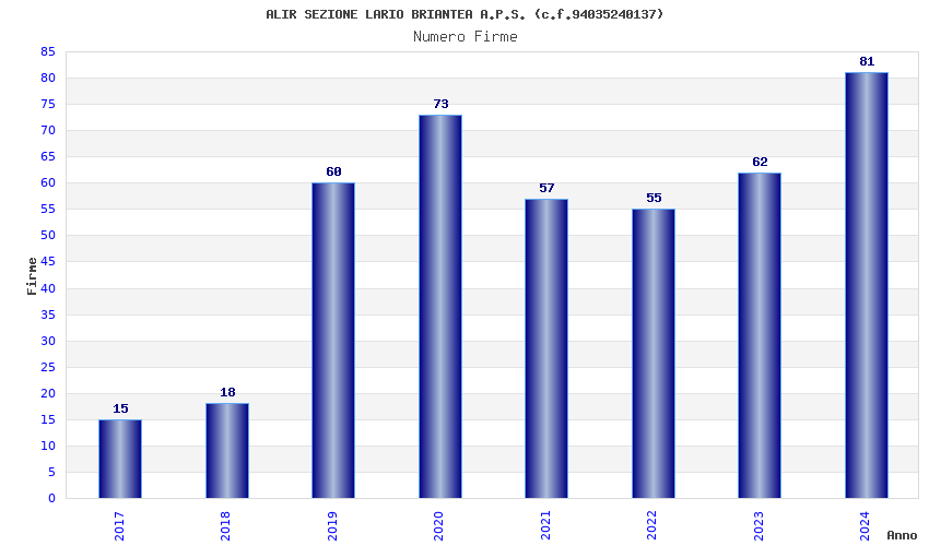Anno Firme Importi Media Naz. Reg. Prov. Comu.