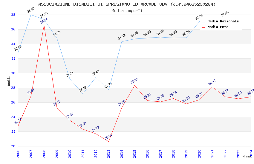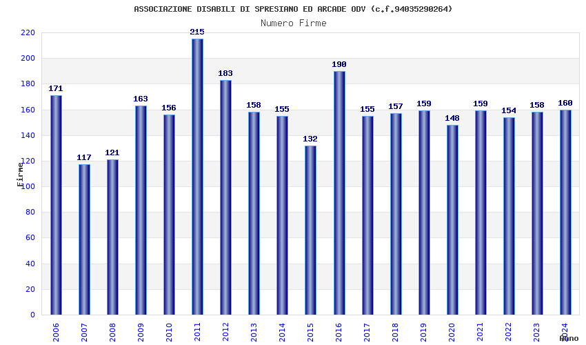 | Anno | Firme | Importi | Media | Naz. | Reg. | Prov. | Comu. |