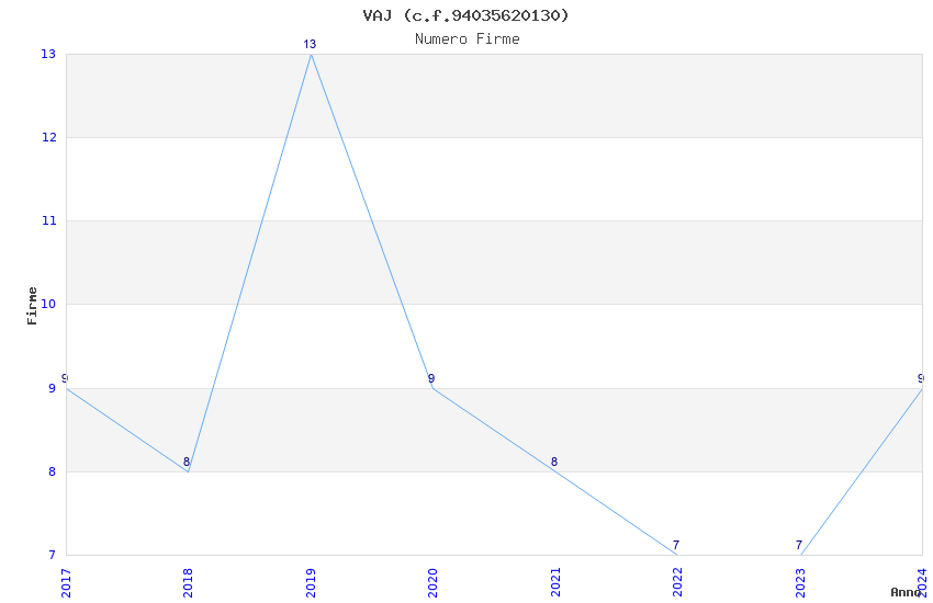 | 2019 | 13 | 802,21 | 61,71 | 39.034 | 8.272 | 373 | 5 |
