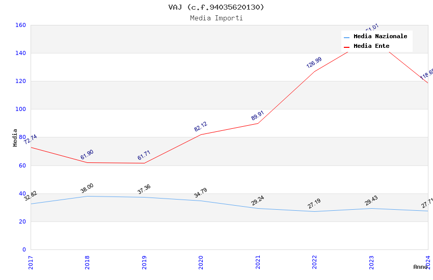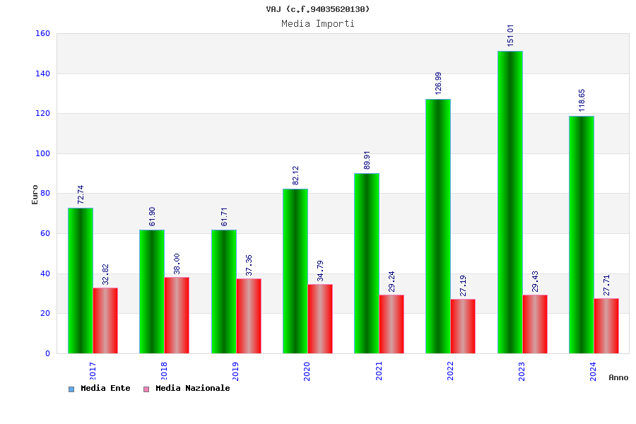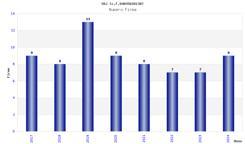 | Anno | Firme | Importi | Media | Naz. | Reg. | Prov. | Comu. |
