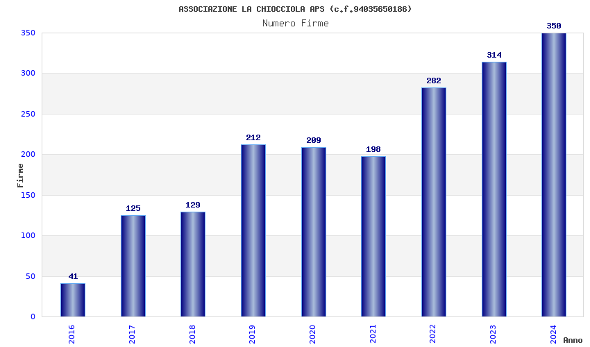 Anno Firme Importi Media Naz. Reg. Prov. Comu.
