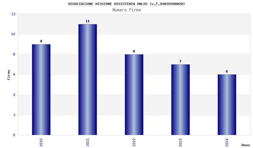 | Anno | Firme | Importi | Media | Naz. | Reg. | Prov. | Comu. |