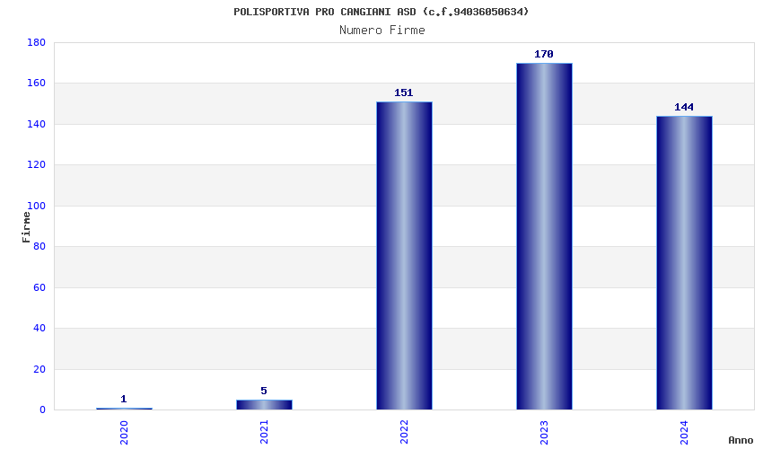 | Anno | Firme | Importi | Media | Naz. | Reg. | Prov. | Comu. |