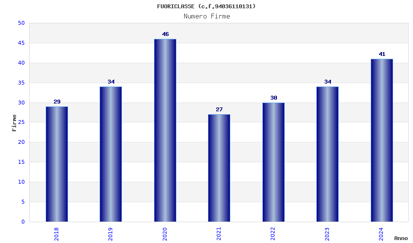 | Anno | Firme | Importi | Media | Naz. | Reg. | Prov. | Comu. |
