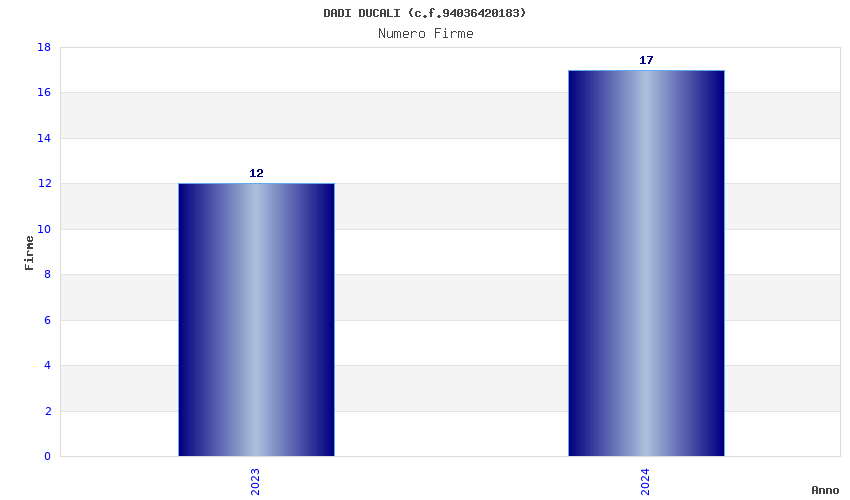 | Anno | Firme | Importi | Media | Naz. | Reg. | Prov. | Comu. |