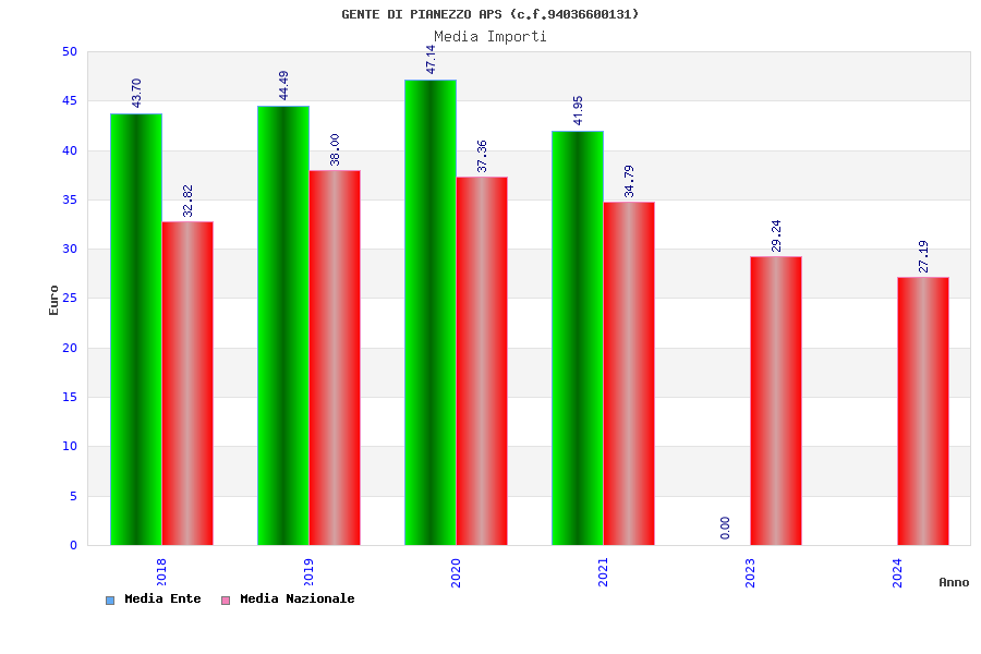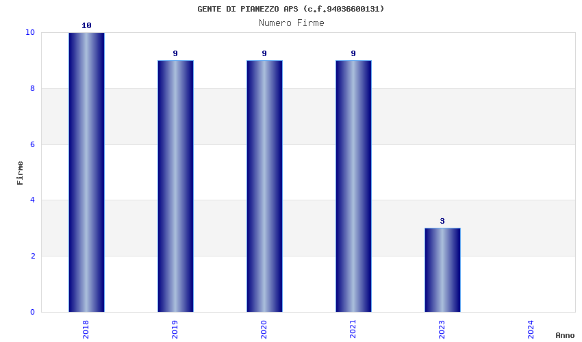 | Anno | Firme | Importi | Media | Naz. | Reg. | Prov. | Comu. |