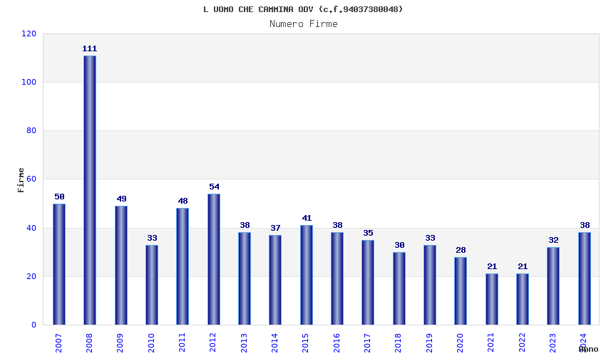 | Anno | Firme | Importi | Media | Naz. | Reg. | Prov. | Comu. |
