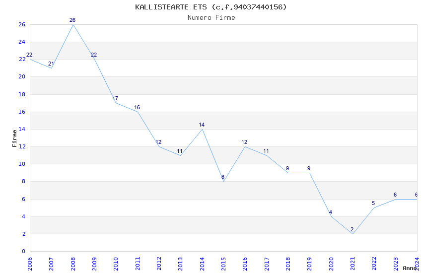 | 2006 | 22 | 2.244,48 | 102,02 | 14.174 | 3.699 | 1.164 | 714 |