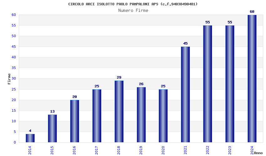 | Anno | Firme | Importi | Media | Naz. | Reg. | Prov. | Comu. |