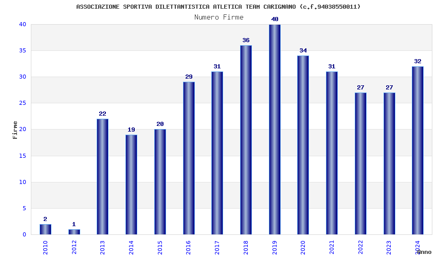 | 2019 | 40 | 1.426,12 | 35,65 | 29.621 | 2.376 | 1.216 | 6 |