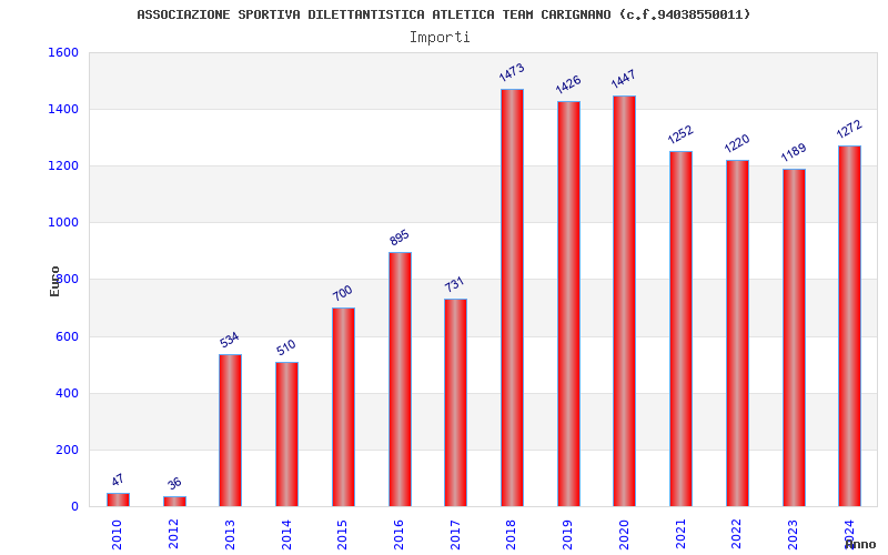 | Anno | Firme | Importi | Media | Naz. | Reg. | Prov. | Comu. |