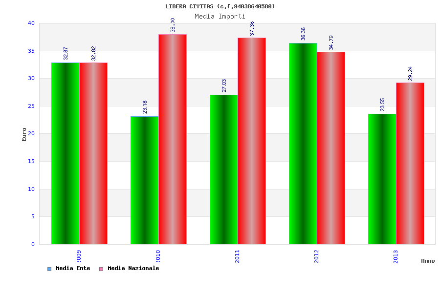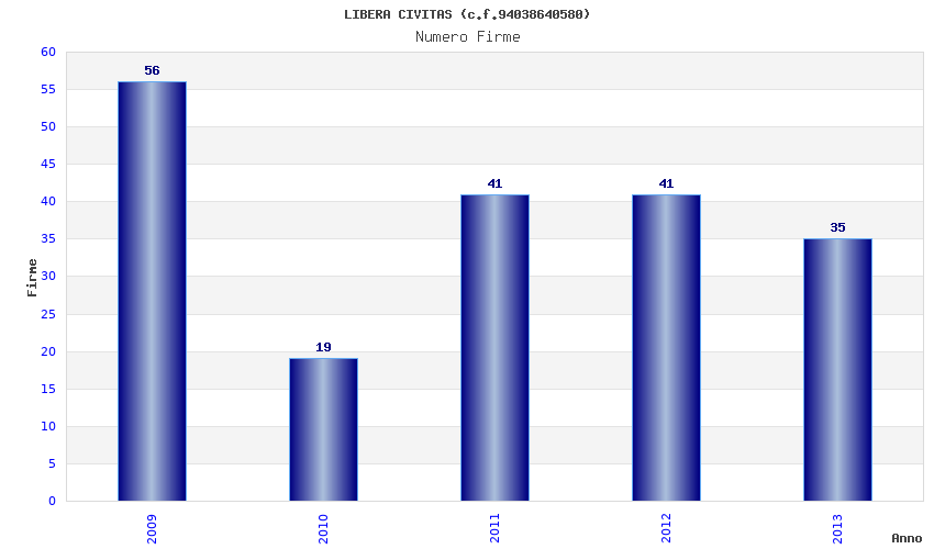 | Anno | Firme | Importi | Media | Naz. | Reg. | Prov. | Comu. |