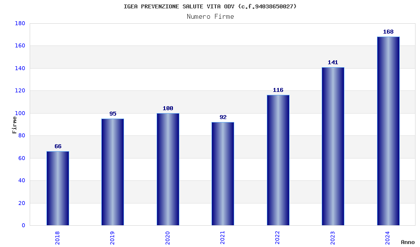 | Anno | Firme | Importi | Media | Naz. | Reg. | Prov. | Comu. |