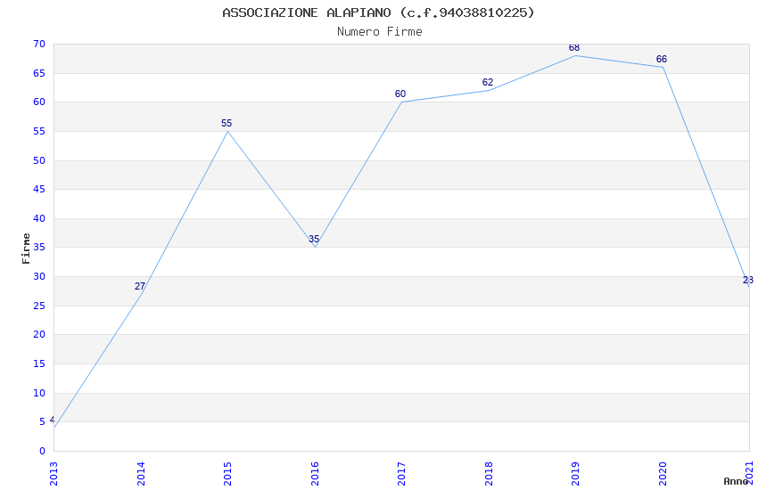 | 2019 | 68 | 1.720,84 | 25,31 | 26.493 | 821 | 396 | 4 |