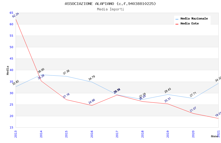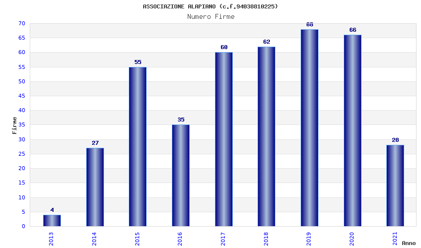 | Anno | Firme | Importi | Media | Naz. | Reg. | Prov. | Comu. |