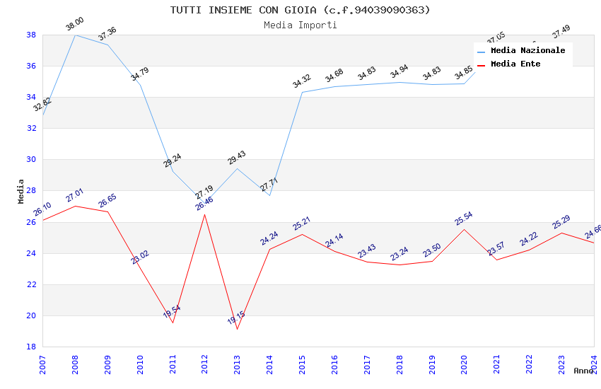 | Anno | Firme | Importi | Media | Naz. | Reg. | Prov. | Comu. |