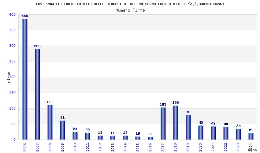 Anno Firme Importi Media Naz. Reg. Prov. Comu.