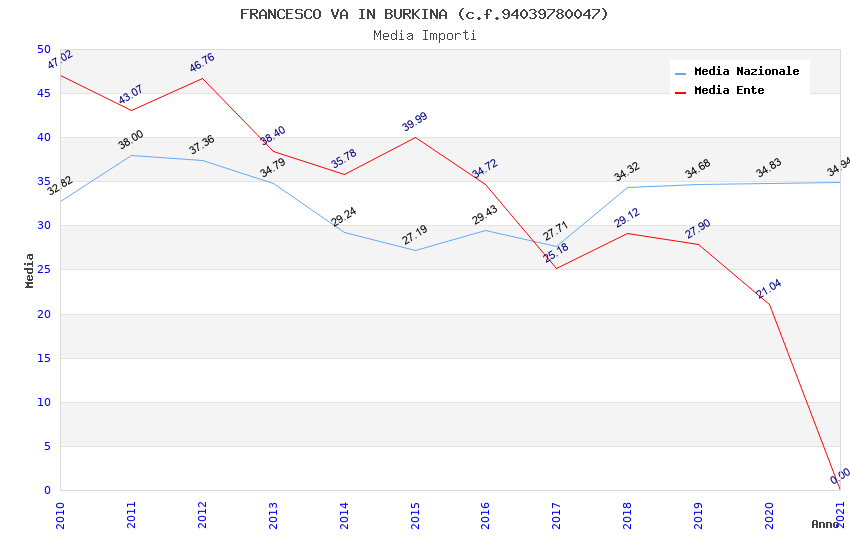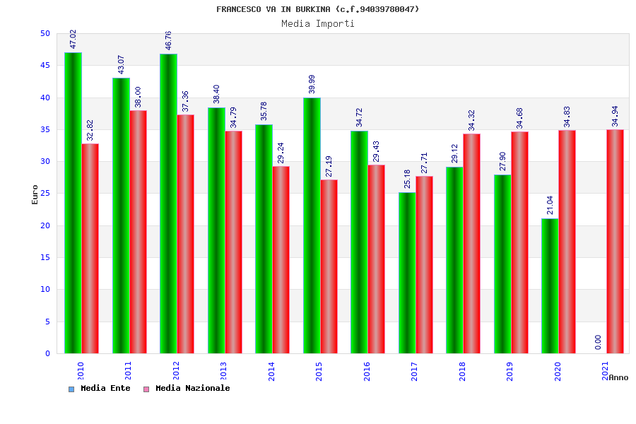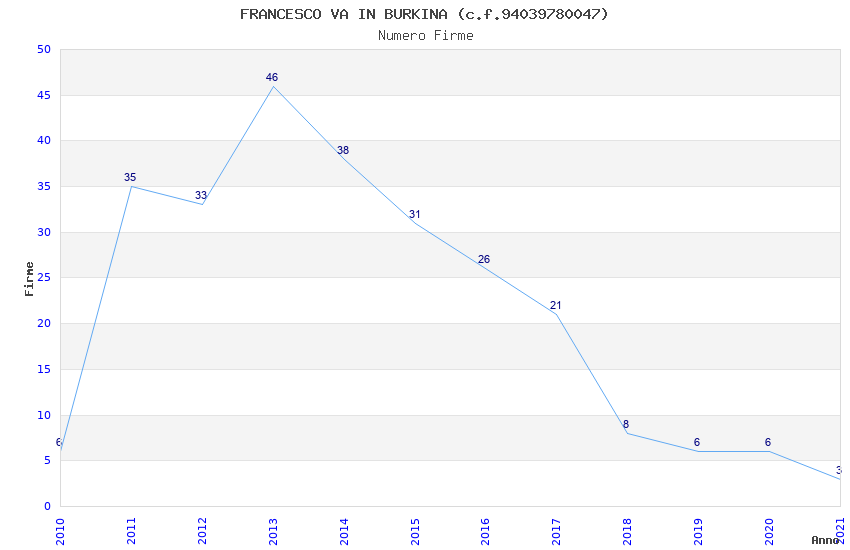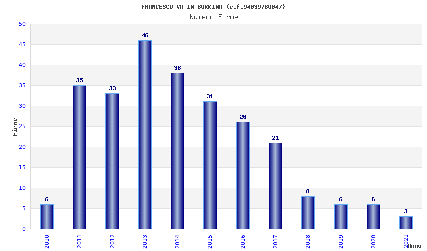 | Anno | Firme | Importi | Media | Naz. | Reg. | Prov. | Comu. |