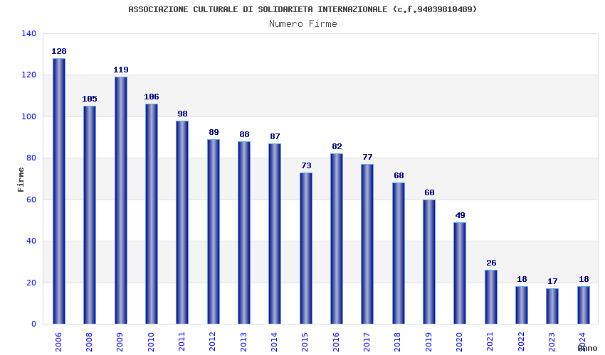 | Anno | Firme | Importi | Media | Naz. | Reg. | Prov. | Comu. |