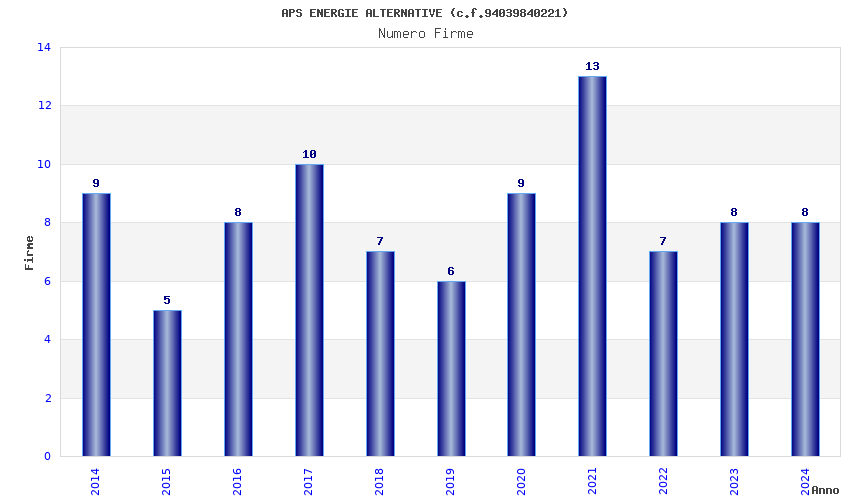 | Anno | Firme | Importi | Media | Naz. | Reg. | Prov. | Comu. |