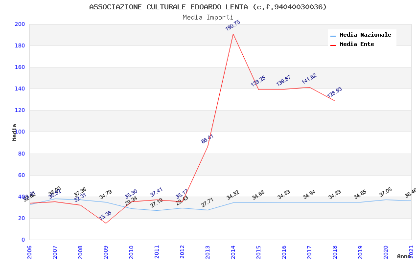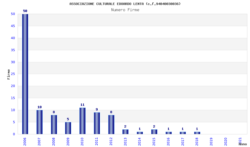 | Anno | Firme | Importi | Media | Naz. | Reg. | Prov. | Comu. |