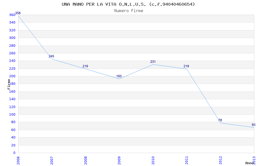 | Anno | Firme | Importi | Media | Naz. | Reg. | Prov. | Comu. |