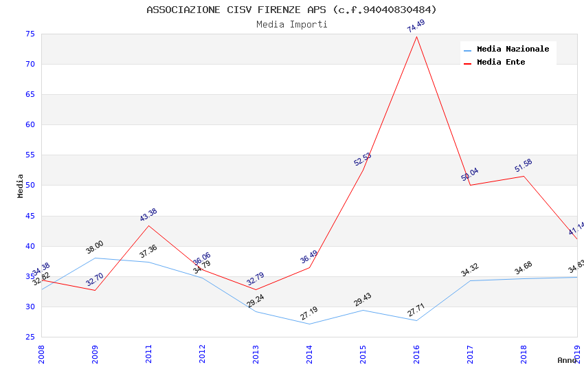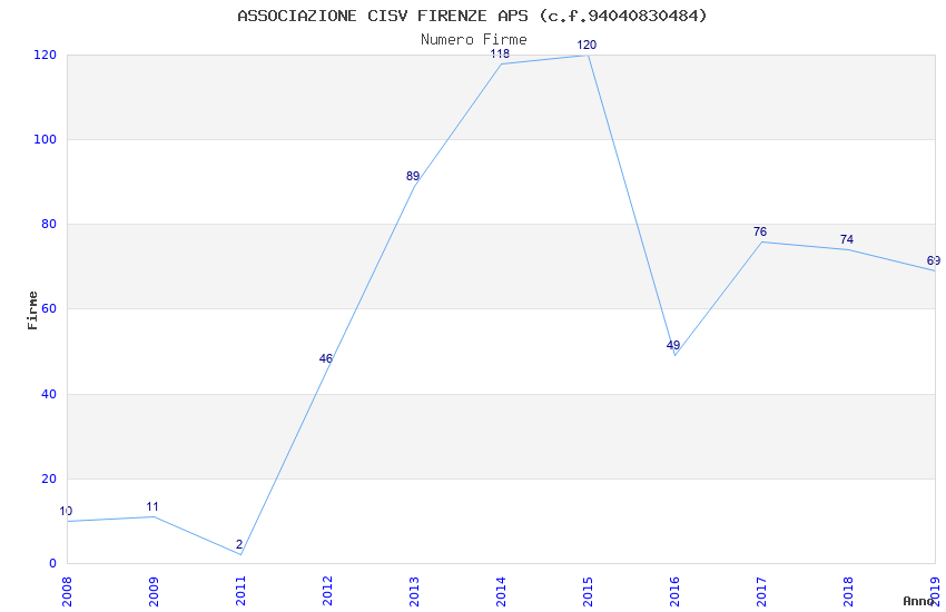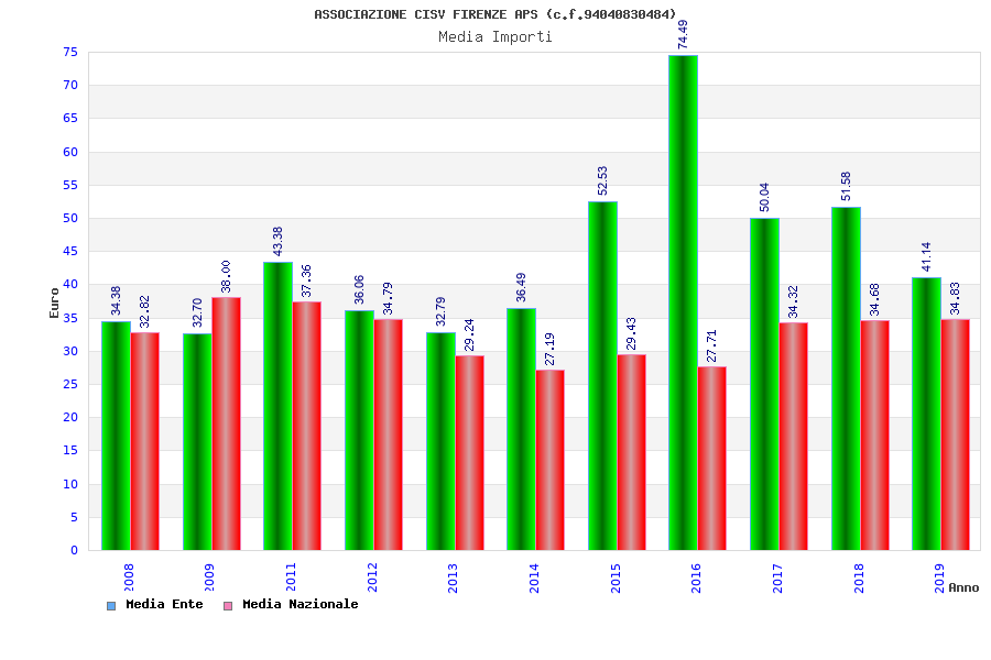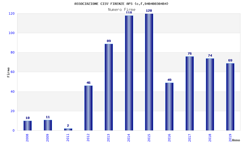 | Anno | Firme | Importi | Media | Naz. | Reg. | Prov. | Comu. |