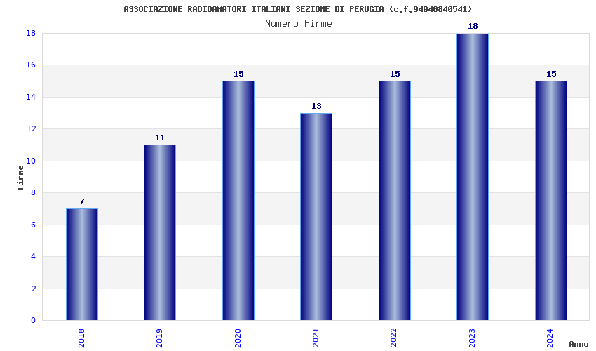 | Anno | Firme | Importi | Media | Naz. | Reg. | Prov. | Comu. |