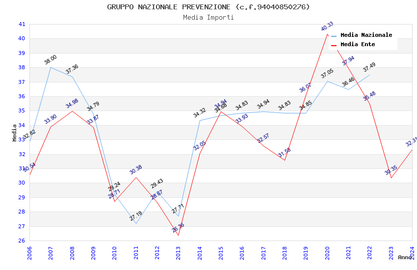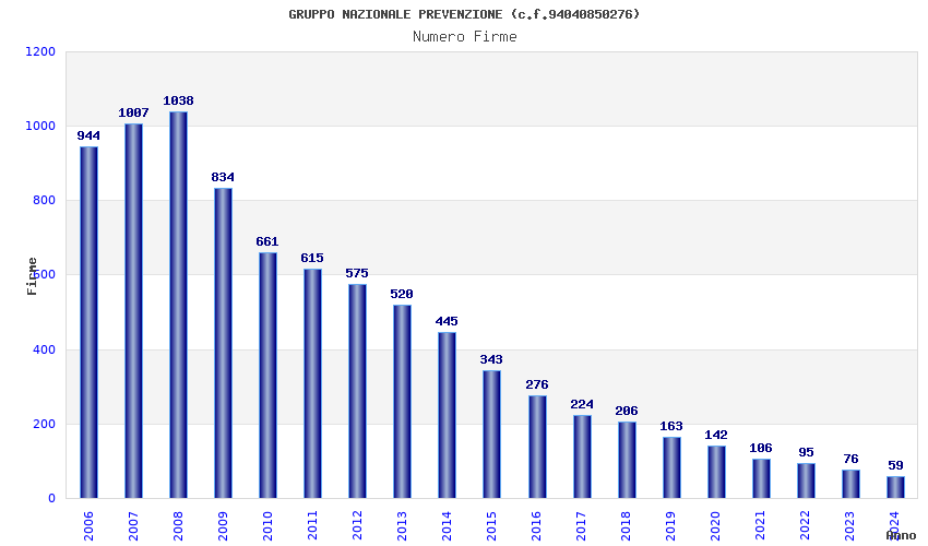 | Anno | Firme | Importi | Media | Naz. | Reg. | Prov. | Comu. |