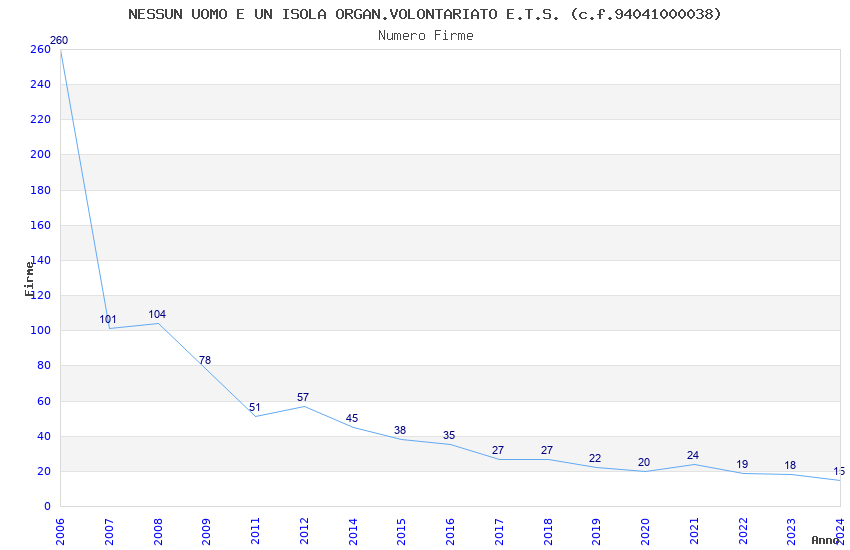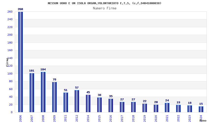 | 2006 | 260 | 13.873,60 | 53,36 | 2.907 | 218 | 14 | 7 |