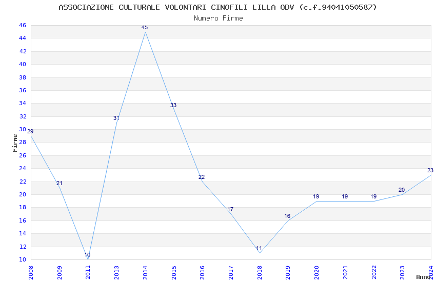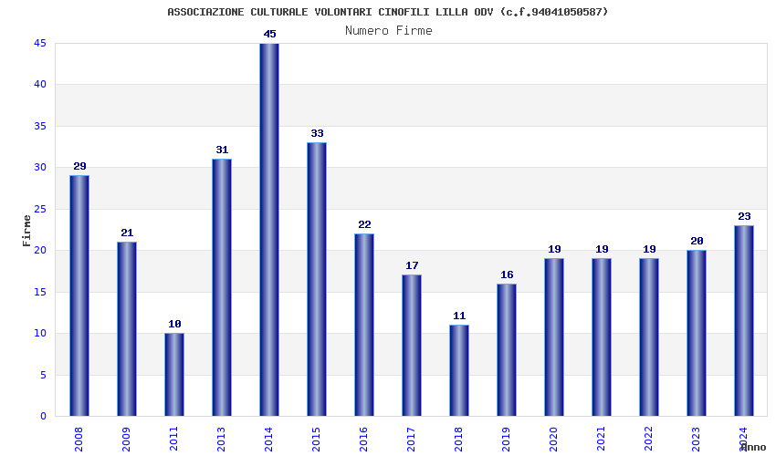 | 2014 | 45 | 1.069,45 | 23,77 | 30.140 | 2.737 | 2.236 | 18 |