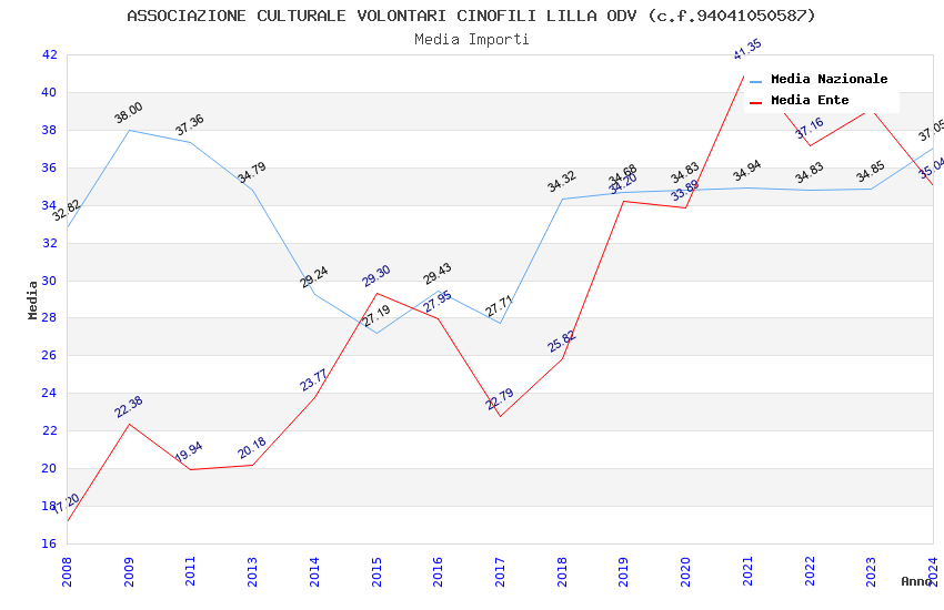 | Anno | Firme | Importi | Media | Naz. | Reg. | Prov. | Comu. |
