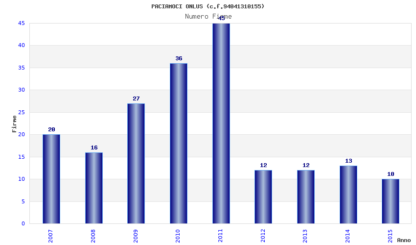 | Anno | Firme | Importi | Media | Naz. | Reg. | Prov. | Comu. |