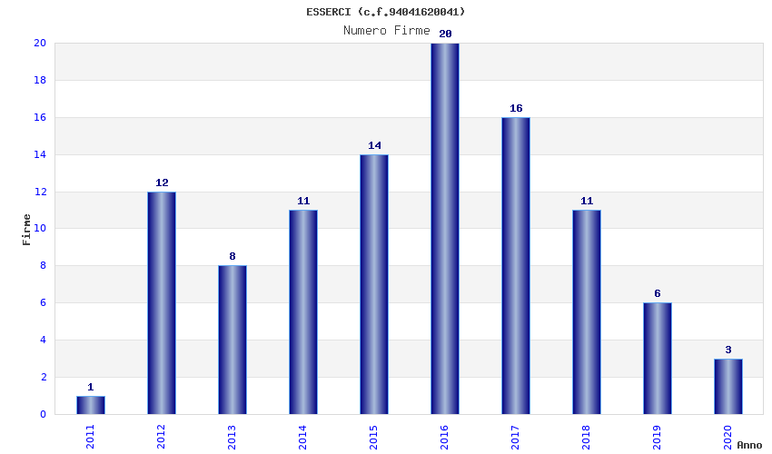 | Anno | Firme | Importi | Media | Naz. | Reg. | Prov. | Comu. |