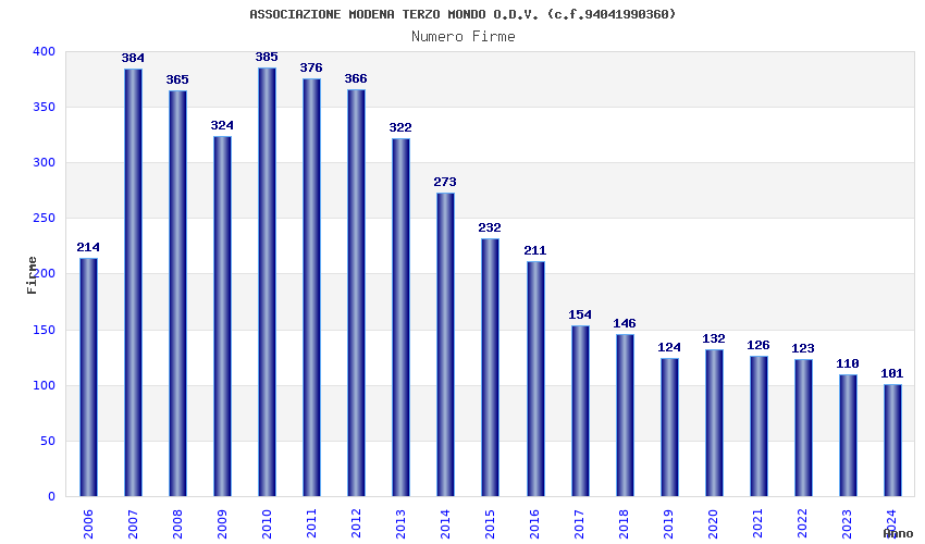| Anno | Firme | Importi | Media | Naz. | Reg. | Prov. | Comu. |