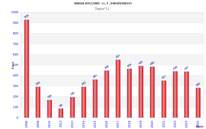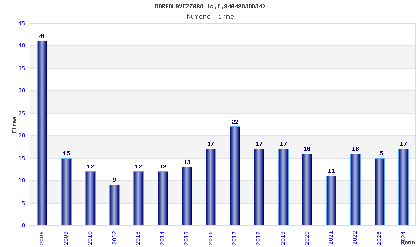 | Anno | Firme | Importi | Media | Naz. | Reg. | Prov. | Comu. |