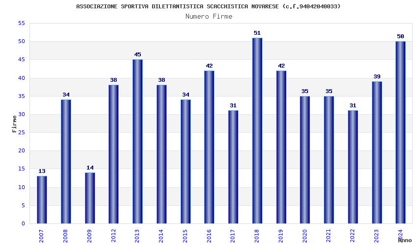 | Anno | Firme | Importi | Media | Naz. | Reg. | Prov. | Comu. |