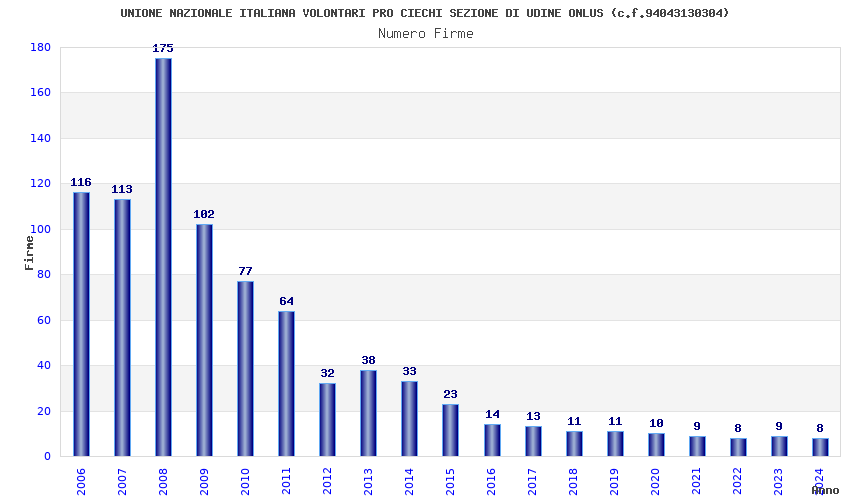 | Anno | Firme | Importi | Media | Naz. | Reg. | Prov. | Comu. |