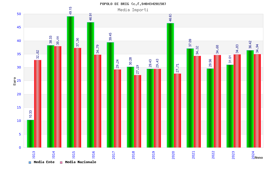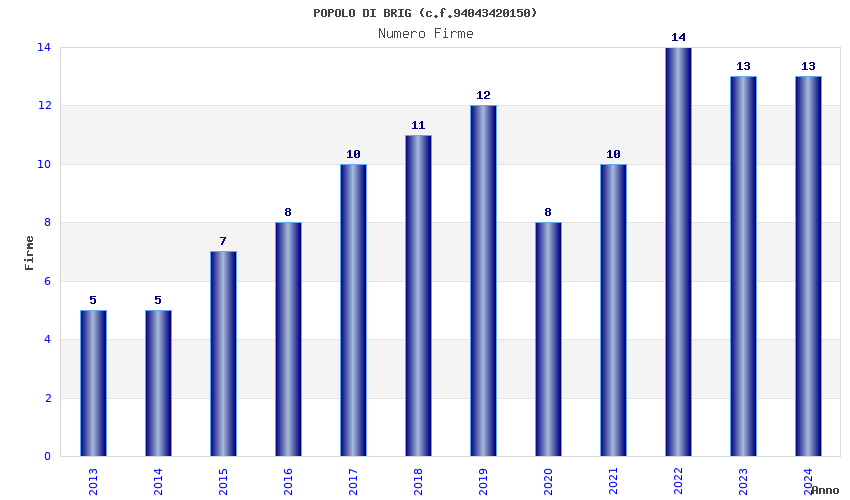 | Anno | Firme | Importi | Media | Naz. | Reg. | Prov. | Comu. |