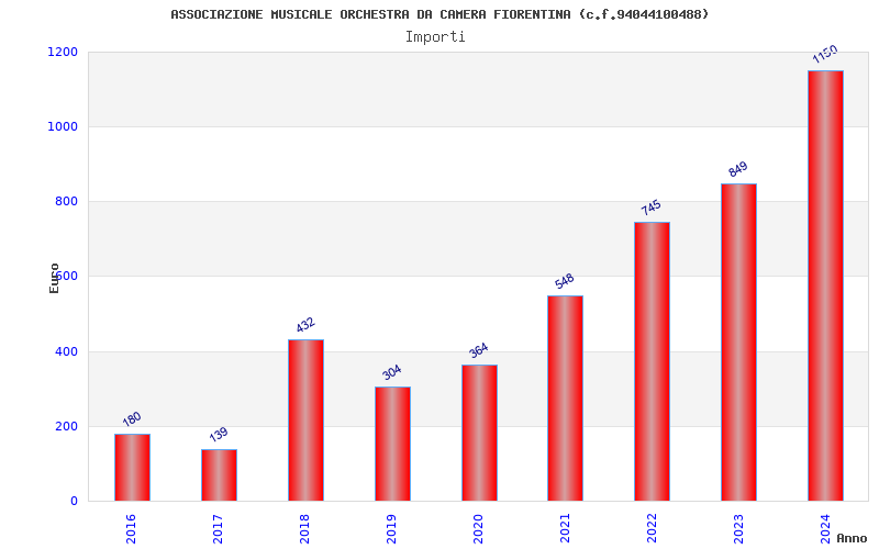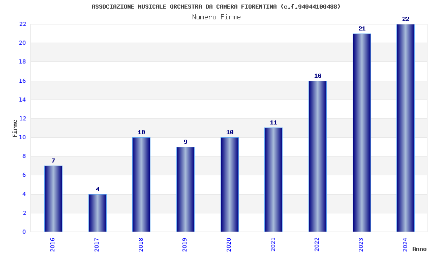 | Anno | Firme | Importi | Media | Naz. | Reg. | Prov. | Comu. |