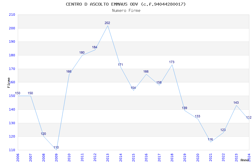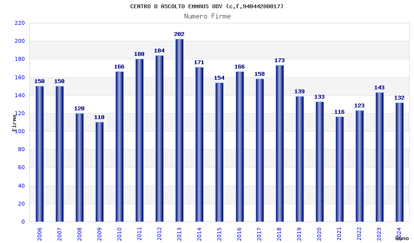 | 2013 | 202 | 4.783,25 | 23,68 | 9.017 | 649 | 362 | 3 |